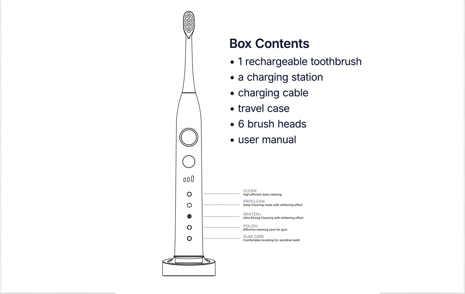 - Built-in timer – 30-second intervals and automatic stop after 2 minutes, as recommended by dentists