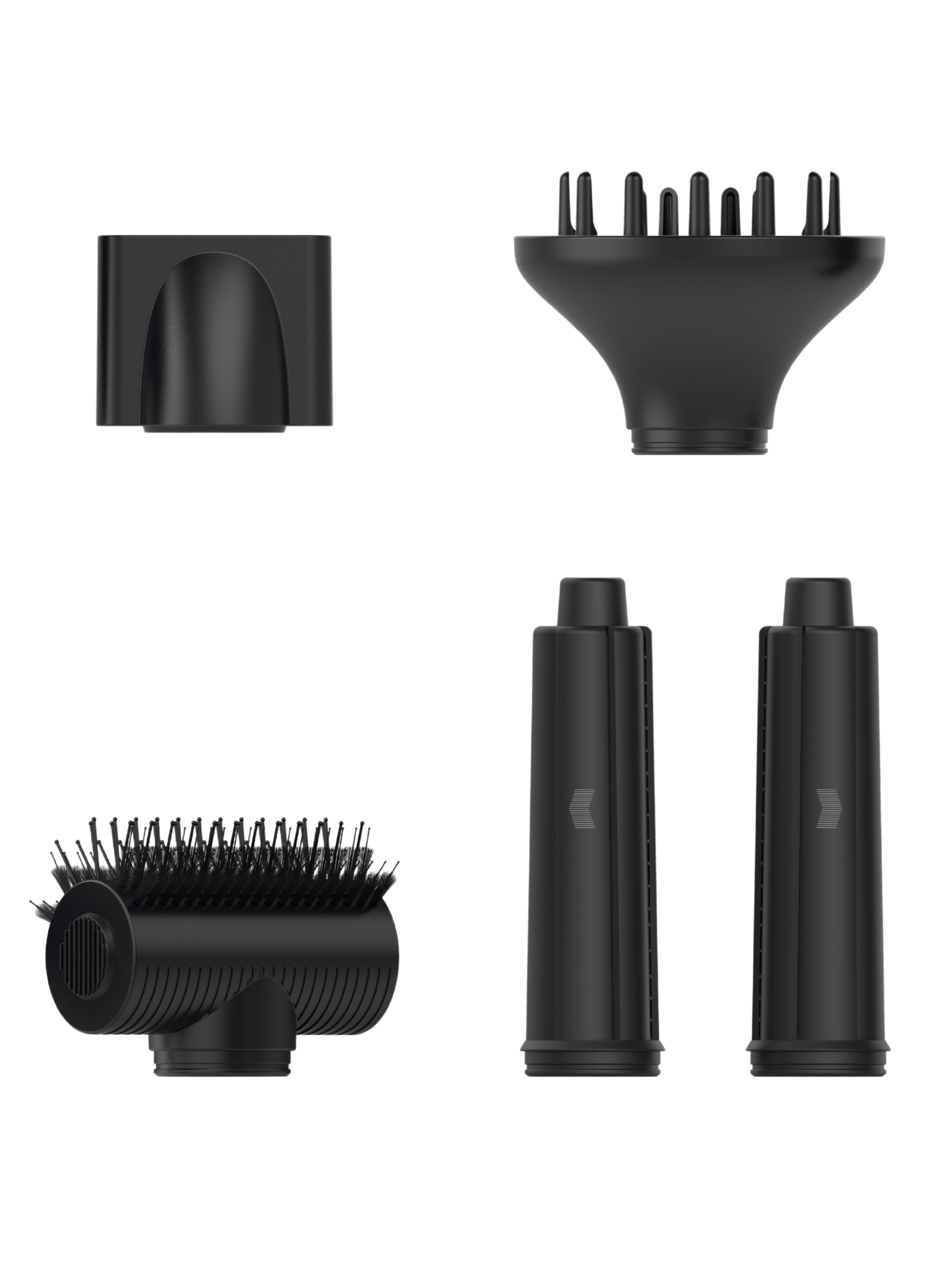 Attachments - Magnetic concentrator, diffuser, smooth brush, left/right curling irons